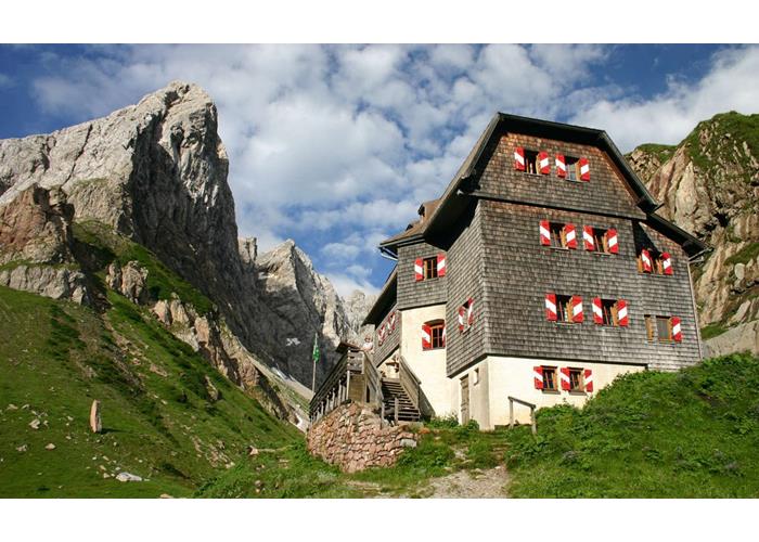 L'Anello dei Tre Rifugi è un itinerario classico e molto frequentato che in agosto è sede anche di una famosa staffetta podistica. Raggiunto quindi il punto di partenza, si inizia lungo la carrareccia a monte del rifugio Tolazzi (segnavia CAI n.144) lasciando subito a destra la deviazione per il rifugio Marinelli. Nel successivo tratto numerose scorciatoie consentono di abbreviare in più punti i tornanti ma in ogni caso si giunge ad un cartello che indica la possibilità di imboccare il sentiero che risale la sinistra orografica del vallone (chi desidera proseguire con andamento più riposante può continuare lungo la mulattiera). Il bosco, inizialmente costituito da abeti rossi e larici, ben presto si dirada per far posto ad una fitta mugheta dove la pendenza si attenua decisamente. Si attraversa il greto asciutto del rio Landri e si risale sull'opposto versante fino a ricongiungersi con la mulattiera sassosa ormai ridotta anch'essa a sentiero. Raggiunto l’orizzonte dei prati, il percorso sale con ampie svolte passando poco sotto la vecchia casermetta della Finanza. Ormai in vista del passo di Volaia, si lascia sulla destra la deviazione per il sentiero Spinotti, quindi si passa accanto ad una sorgente e si raggiunge in pochi minuti il Rifugio Lambertenghi (1955 m), inserito in una magnifica cornice alpina a ridosso di imponenti pareti rocciose. Nelle ghiaie circostanti è assai frequente l’incontro con la marmotta. Prima di proseguire è consigliabile risalire i pochi metri che ci separano dal passo di Volaia. Il piccolo sforzo sarà ampiamente ricompensato dalla visuale che si offre dal passo, dove si sconfina in Austria e ci si affaccia sulla splendida conca del lago di Volaia e di conseguenza sul Wolayerseehütte (aggiunto agli altri questo diventa il quinto rifugio!). Ritornati al rifugio Lambertenghi si ridiscende sui propri passi fino ad imboccare, ora sulla sinistra, la deviazione per il sentiero attrezzato Spinotti (segnavia CAI n.145, cartello). Rasentando le pareti rocciose della Cima Lastrons del Lago, si perde leggermente quota per ghiaie giungendo alla base del grande colatoio dove hanno inizio le attrezzature (utili da qui in poi il caschetto e il set di autoassicurazione). La prima difficoltà consiste in un canalino roccioso piuttosto incassato, coadiuvato dal cavo metallico, che conduce ad una scala di legno. Si aggira poi uno spigolo roccioso un poco esposto raggiungendo nuovamente la parete con l'aiuto di alcuni infissi metallici. Da qui in poi seguono attrezzature recenti e ben collocate che, assieme alle abbondanti segnalazioni, rendono sicura la progressione nei punti più ripidi. Terminata questa prima parte, il percorso compie un ampio traverso contornando un circo ghiaioso dove è possibile incontrare qualche nevaio fino ad estate inoltrata. Una serie di gradini in legno facilita il superamento di una placca bagnata oltre la quali il sentiero taglia un ripido pendio guadagnando, con un paio di svolte, il panoramico Costone di Stella (2180 m). Da qui inizia la discesa nell'opposto versante in un ambiente assai diverso dove si alternano conche erbose, dossi, affioramenti calcarei e rocce fessurate. Si lascia a sinistra una prima deviazione che consente di salire direttamente al monte Coglians quindi si oltrepassa un tratto malagevole di placche affioranti miste ad erba. Attraversando il vallone del Ploto si incrocia il sentiero che dalla rotabile sottostante sale anch'esso verso la via normale al monte Coglians. Noi invece proseguiamo diritti tagliando orizzontalmente le pendici erbose del Pic Chiadin. Doppiato il costone meridionale è necessario ancora qualche modesto saliscendi e si cala infine a forcella Morareet ed al Rifugio Marinelli (2122 m). L'Anello dei Tre Rifugi inizia ora la sua discesa a destra (ovest) nel vallone sottostante, lungo i pascoli di casera Morareet (segnavia CAI n.143) fino a ricongiungersi con la pista di servizio a poca distanza dalla casera stessa. Si scende per pochi metri lungo la strada sterrata, ma si piega subito a sinistra seguendo le segnalazioni CAI. Si cala a comodi tornanti passando in prossimità del rio Morareet in un bosco misto diontano, abete rosso e larice, fino ad immettersi definitivamente nella carrareccia che con pochi tornanti ci riporta al punto di partenza.