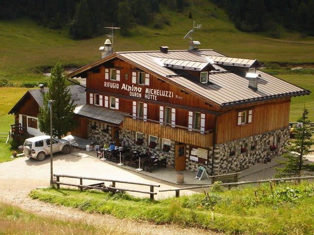 VON CAMPITELLO DI FASSA DURCH DAS DURON TAL Links unterhalb der Kirche in Campitello startet die Straße in das Duron Tal. Kurz nach der Lino Brach Hütte trennt sich der Weg nr 578 nach links über eine kleine Brücke. Durch Wald und Wiesen kommt man auf den Pas de Ciarejoles. Von dort geht der Weg nr. 580 mit grossen Serpentiene hinauf auf den Pas de Dona, dort öffnet sich das Valon de Antermoa und man ist in kurzem an der Antermoia Hütte. Std. 3.30 Man kann auch den ersten Aufstieg in das Durontal durch den Shuttle Bus vermeiden , da durch kürzt sich die Aufstiegzeit auf Std. 2.45
