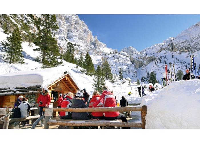 D’inverno, il Rifugio si raggiunge scendendo dal Monte Lagazuoi lungo la pista numero 1 “Armentarola” che collega il comprensorio sciistico di Cortina d’Ampezzo con quello dell’Alta Badia.