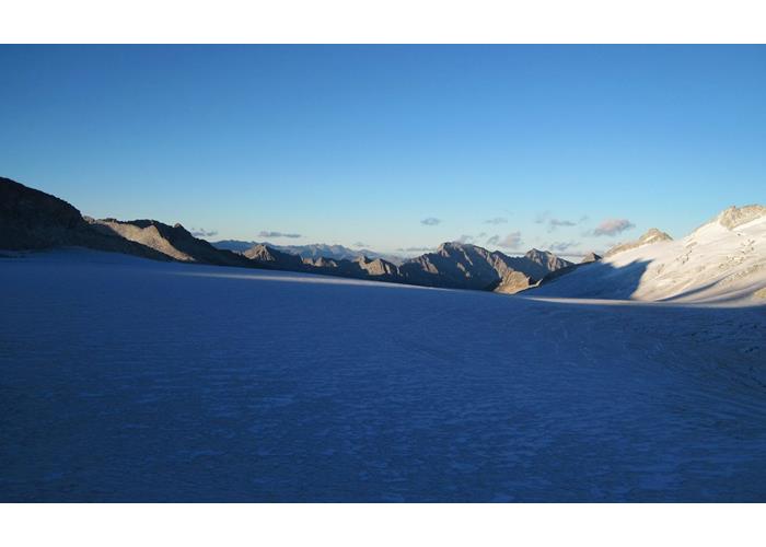 Adamello - Pian di Neve la via normale più facile per l'Adamello - 5:00 ORE 1300m dislivello Abbastanza Difficile: L'Itinerario si sviluppa sul sentiero n°14 nei detriti morenici fino al passo Salarno m 2900..passando sotto le verticali pareti,e mostrando un panorama spettacolare sulla valSalarno, Per poi continuare sul ghiacciaio (naturalmente legati. e se serve picozza e ramponi).raggiunto il pian di neve superiore possiamo optare per le roccette est o la pala sud/ovest.